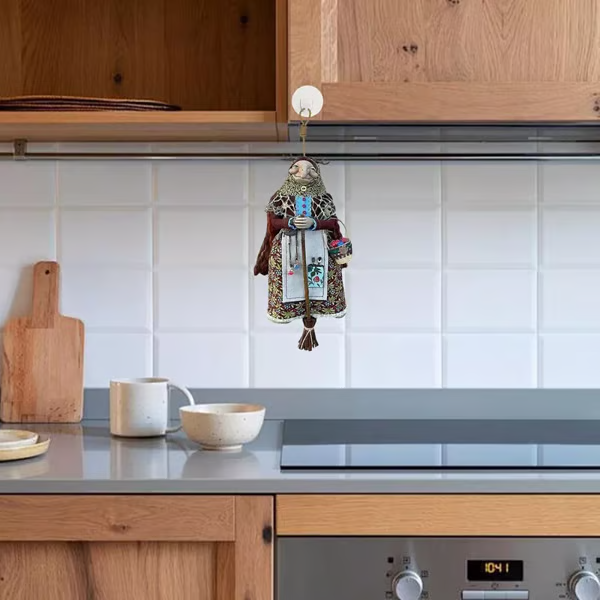 In European folklore, a kitchen witch is believed to protect the home, bring good luck, and prevent kitchen mishaps.